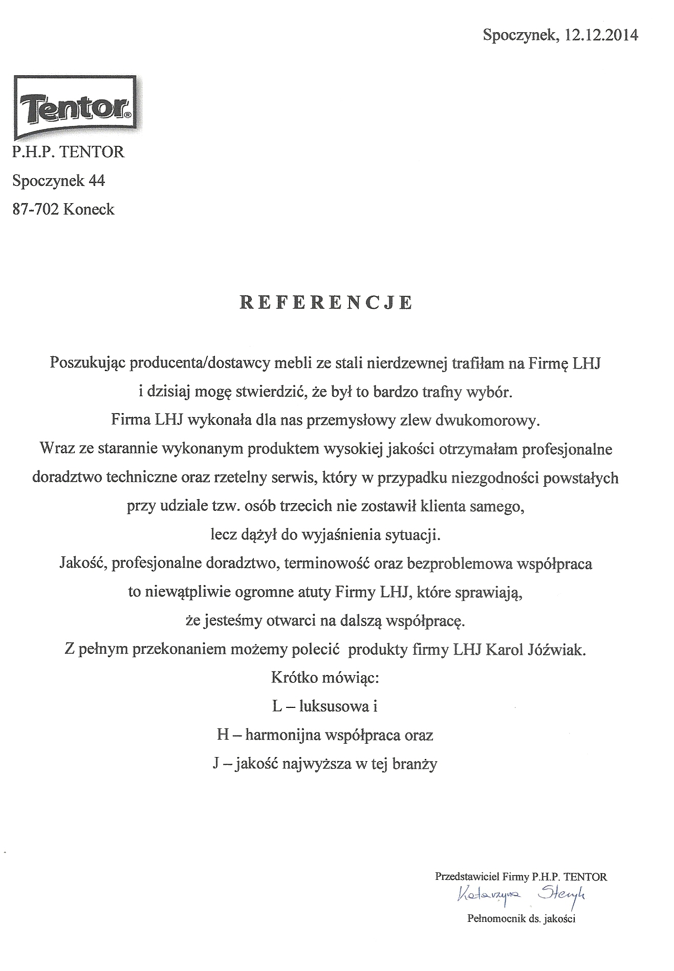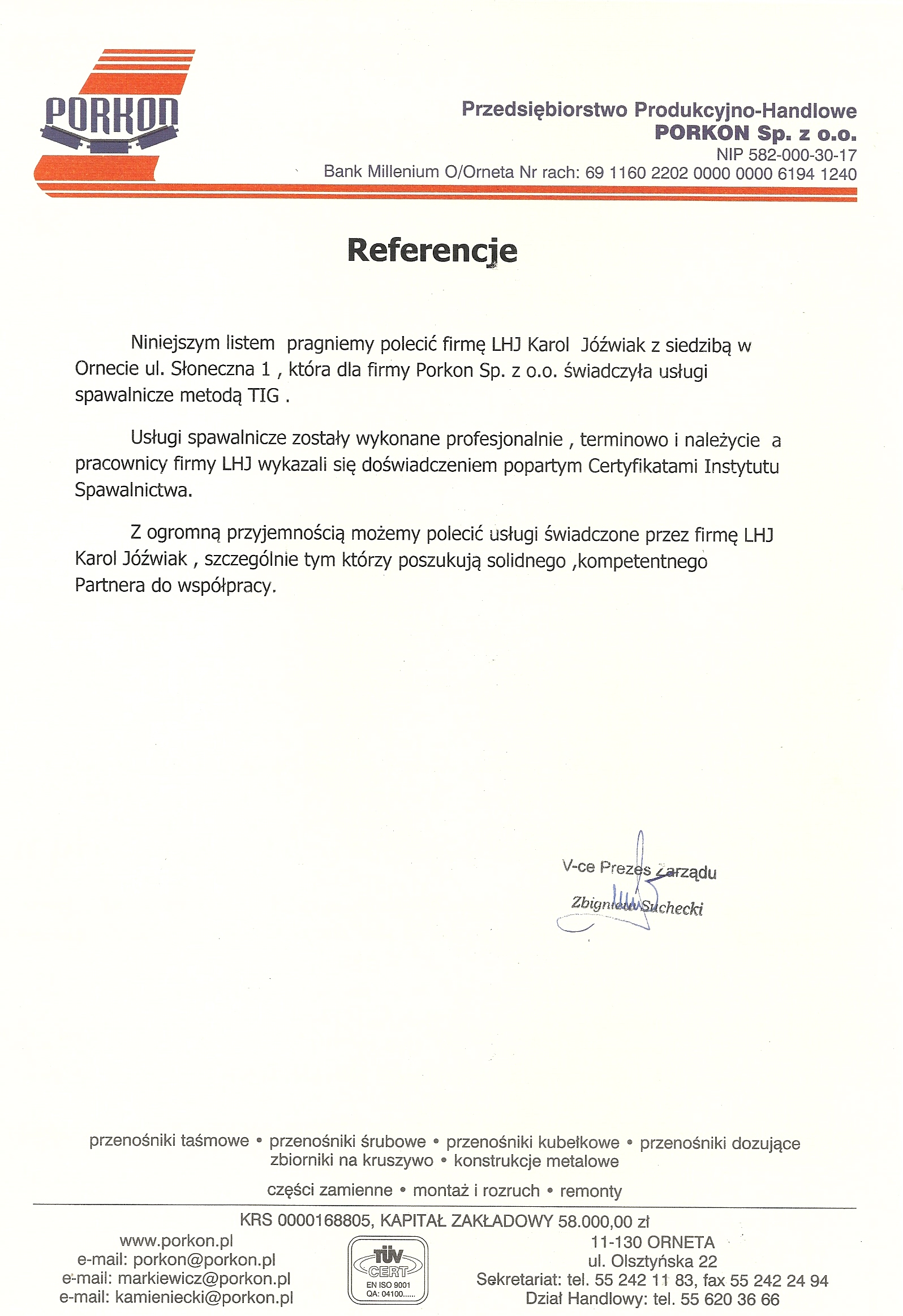 Usługi spawalnicze zostały wykonane profesjonalnie , terminowo i należycie a pracownicy firmy LHJ wykazali się doświadczeniem popartym Certyfikatami Instytutu Spawalnictwa. Więcej… Porkon